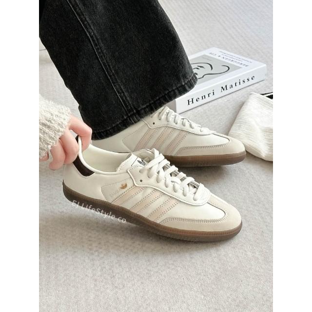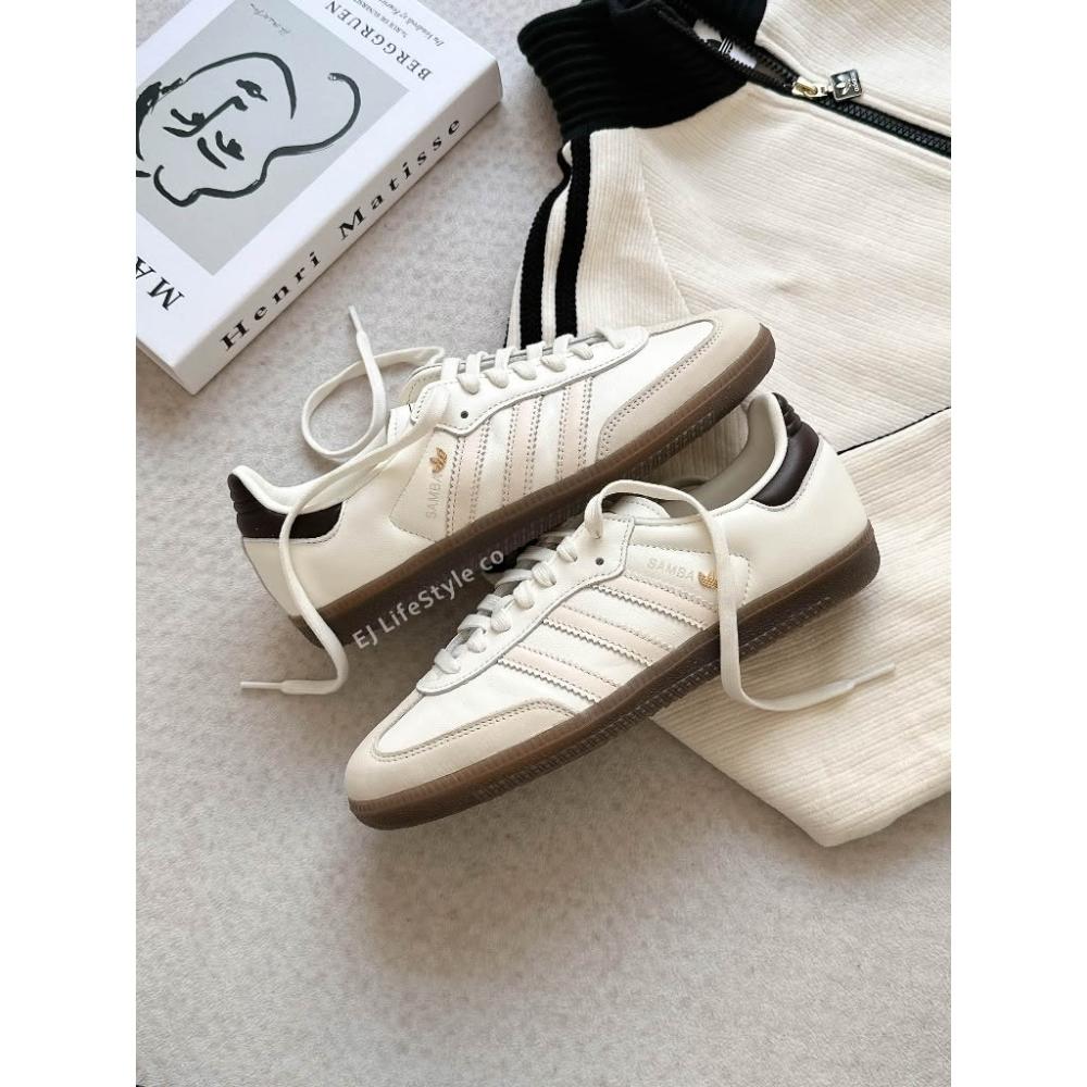 adidas 愛迪達ADIDAS SAMBA OG 奶油黑尾 奶油白 米色 焦糖底 金屬小標 三葉草 女鞋 IH6628