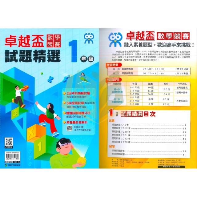 康軒康軒國小 卓越盃 數學競賽試題精選 國小國語 數學 1~6年級 附解答 (國小數學輔材)|(大方書局參考書網路書局)