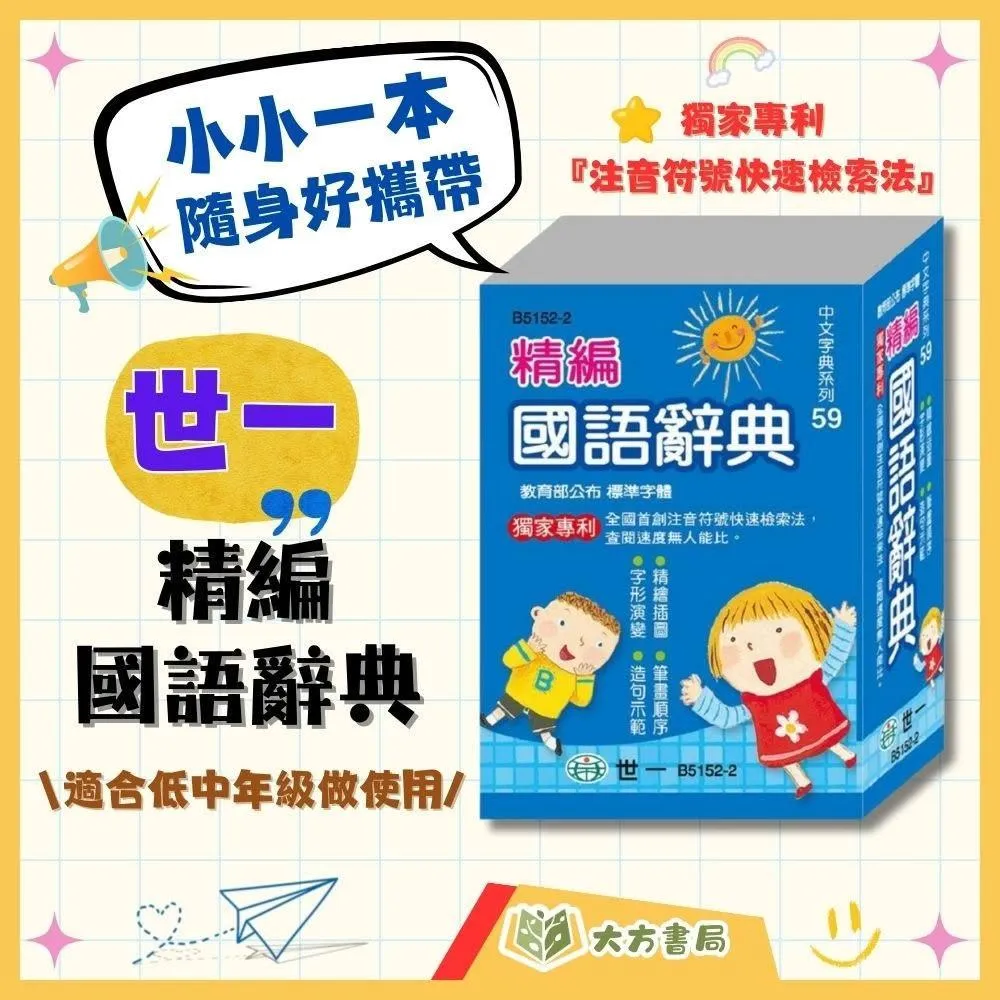 世一攜帶方便 掌上型必備 世一【精編】國語辭典|適用國小低/中/高年級|教育部一字多音審訂|【字典】【大方書局】