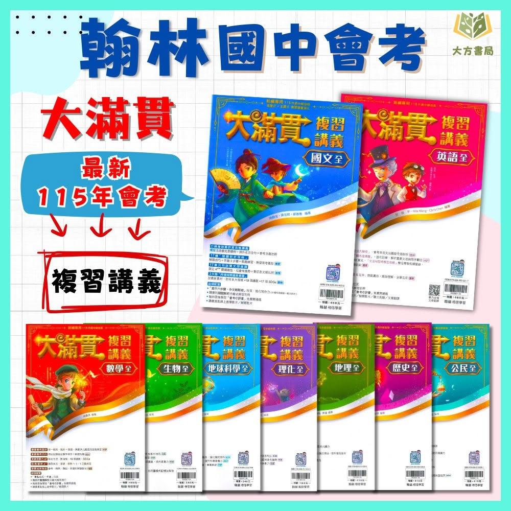 翰林翰林國中 115會考 大滿貫 複習講義 國文 英語 數學 生物 理化 地科 地理 歷史 公民 附解答 (國中會考)|(大方書局參考書網路書局)