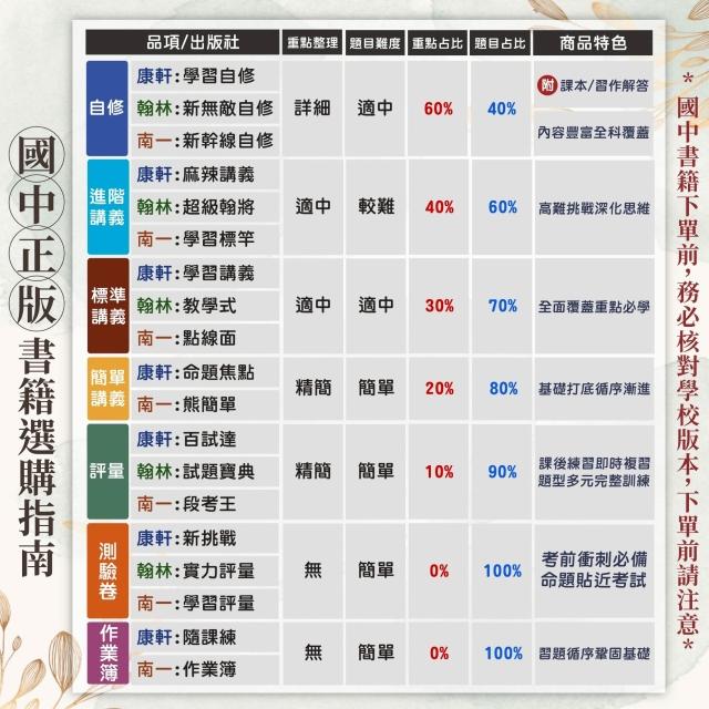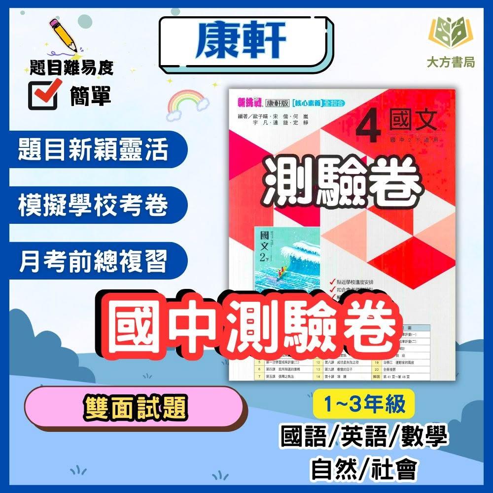 康軒康軒國中 114下《國中測驗卷》國中7~8年級 國文/英語/數學/自然/社會 附解答+雙面試題【大方書局】