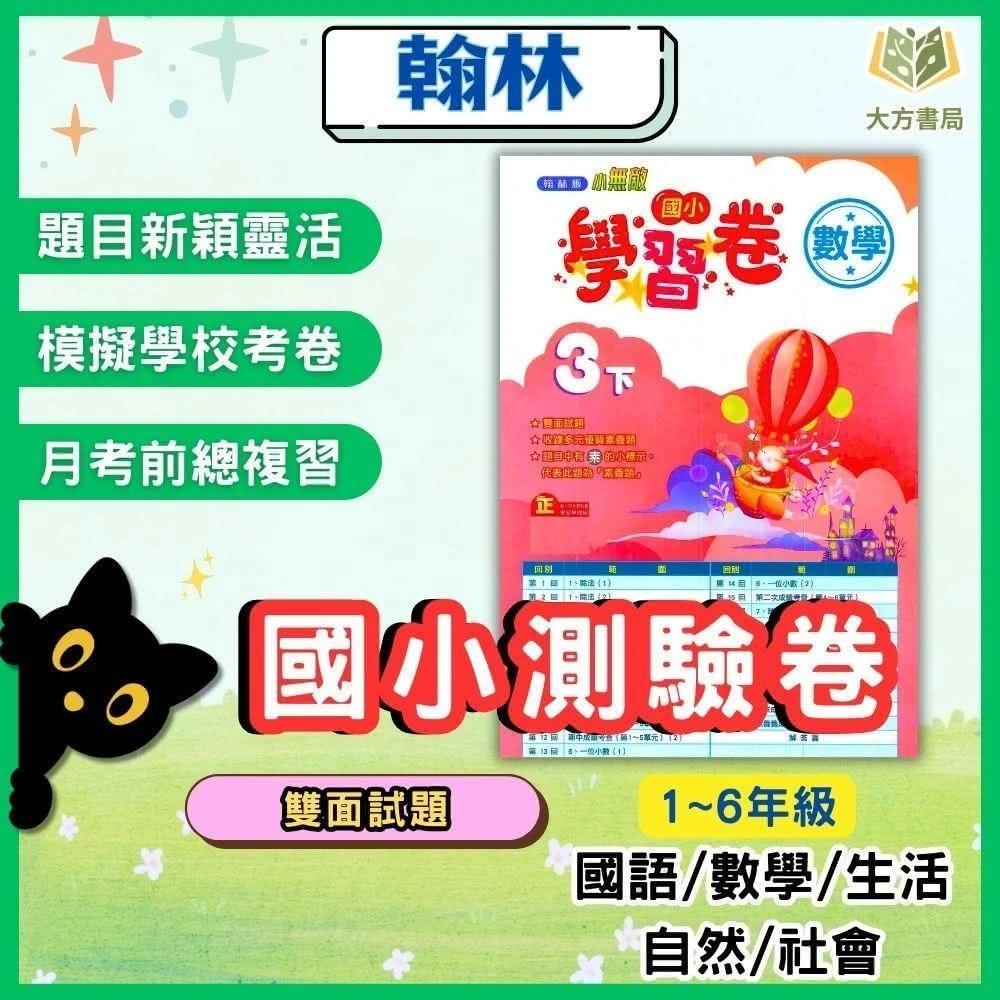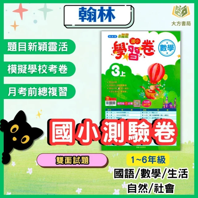 翰林114上 最新版 國小測驗卷 翰林 國小1~6年級 國語/數學/生活/自然/社會 附解答+雙面試題【大方書局】