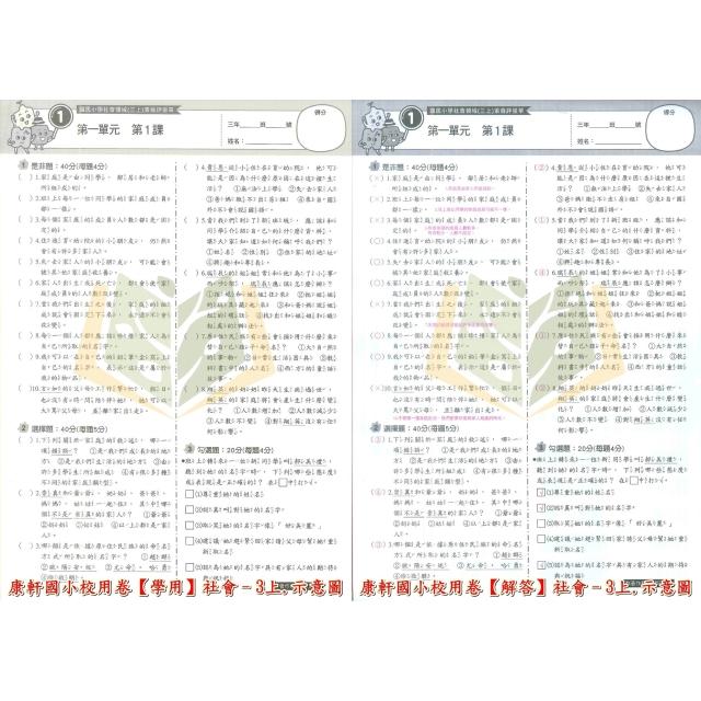 康軒康軒國小 114上《國小校用卷》素養評量單 國小1~6年級 國語 數學 生活 自然 社會 《學用+解答》【大方書局】