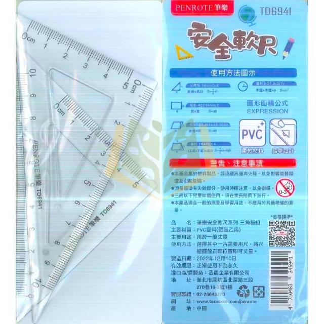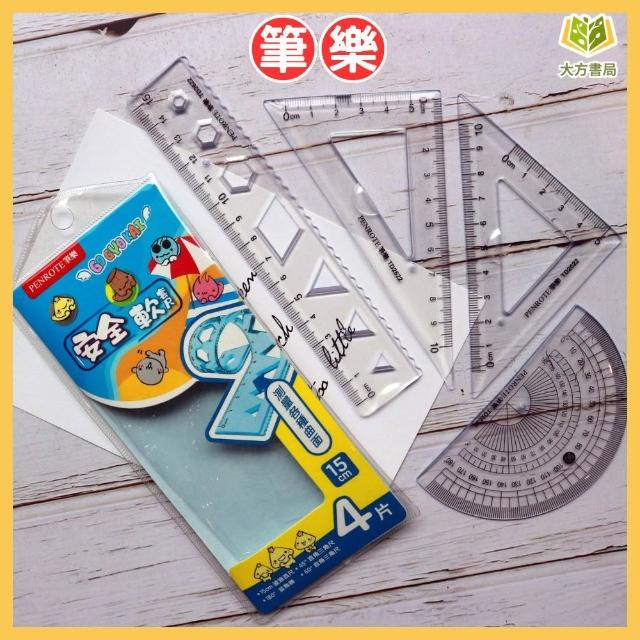 PENROTE 筆樂PENROTE 筆樂文具 15CM波浪洞洞尺 18CM多功能塗卡尺 量角器 三角板組 安全軟套尺 (國小文具)|(大方書局參考書網路書局)