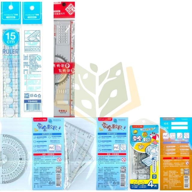 PENROTE 筆樂PENROTE 筆樂文具 15CM波浪洞洞尺 18CM多功能塗卡尺 量角器 三角板組 安全軟套尺 (國小文具)|(大方書局參考書網路書局)