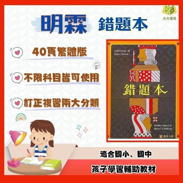 明霖文教專屬訂正本【錯題本】40頁繁體版 不限科目皆可使用|國小/國中/高中通用|錯題整理本 學習筆記本【作業簿】【大方書局】
