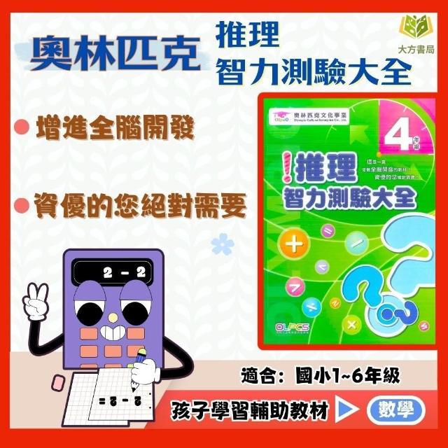 奧林匹克國小【推理智力測驗大全】1~6年級|附解答|國小數學 練習 學習 智力測驗 資優數學【國小數學輔材】【大方書局】