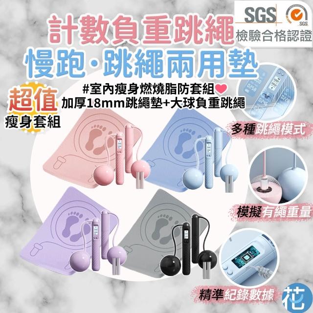 瘦身套組 五鍵智能負重跳繩+加厚18mm跳繩墊 |《 無繩跳繩 大球跳繩 跳繩短墊 跑步墊 靜音墊 運動墊 》