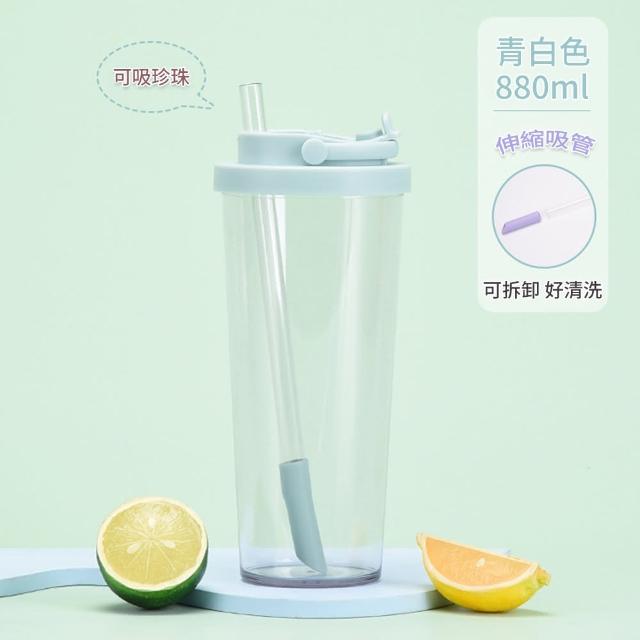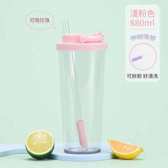 大容量單層手提Tritan吸管杯 880ml |《 隱藏吸管 珍奶杯 手提杯 珍奶杯 珍珠奶茶 送禮 交換禮物 伸縮吸管 隨行杯 水壺 可吸珍珠奶茶 吸管水壺 環保杯 》