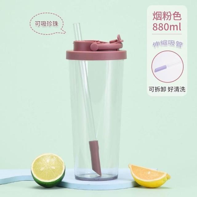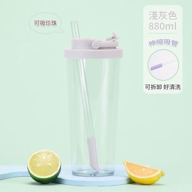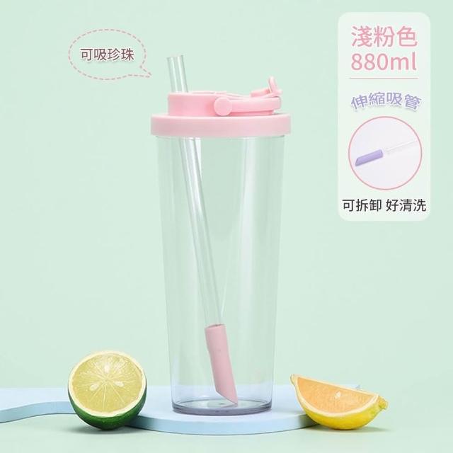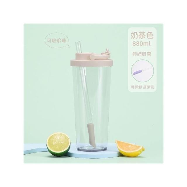 大容量單層手提Tritan吸管杯 880ml | 隱藏吸管 珍奶杯 手提杯 珍奶杯 珍珠奶茶 送禮 交換禮物