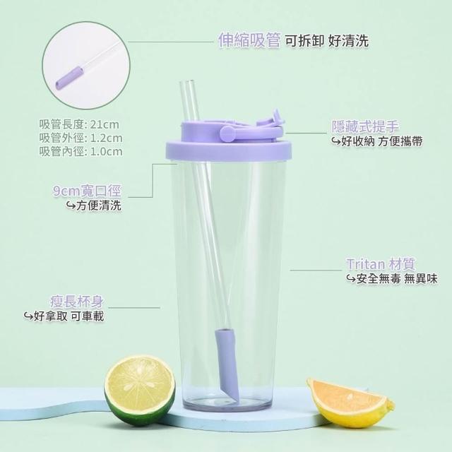 大容量單層手提Tritan吸管杯 880ml | 隱藏吸管 珍奶杯 手提杯 珍奶杯 珍珠奶茶 送禮 交換禮物