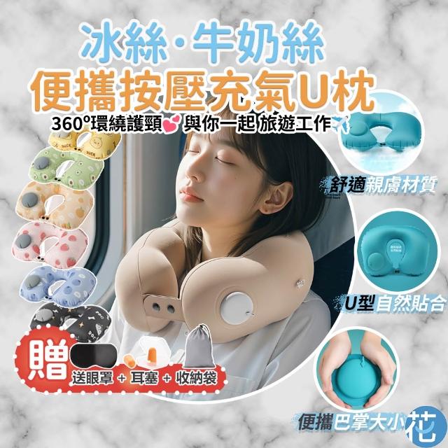 新款 按壓充氣U型枕 牛奶絲 冰絲 |《 u型枕 護頸枕 飛機枕 頭頸枕 充氣頸枕 午睡枕 旅行枕 出國 旅遊 》