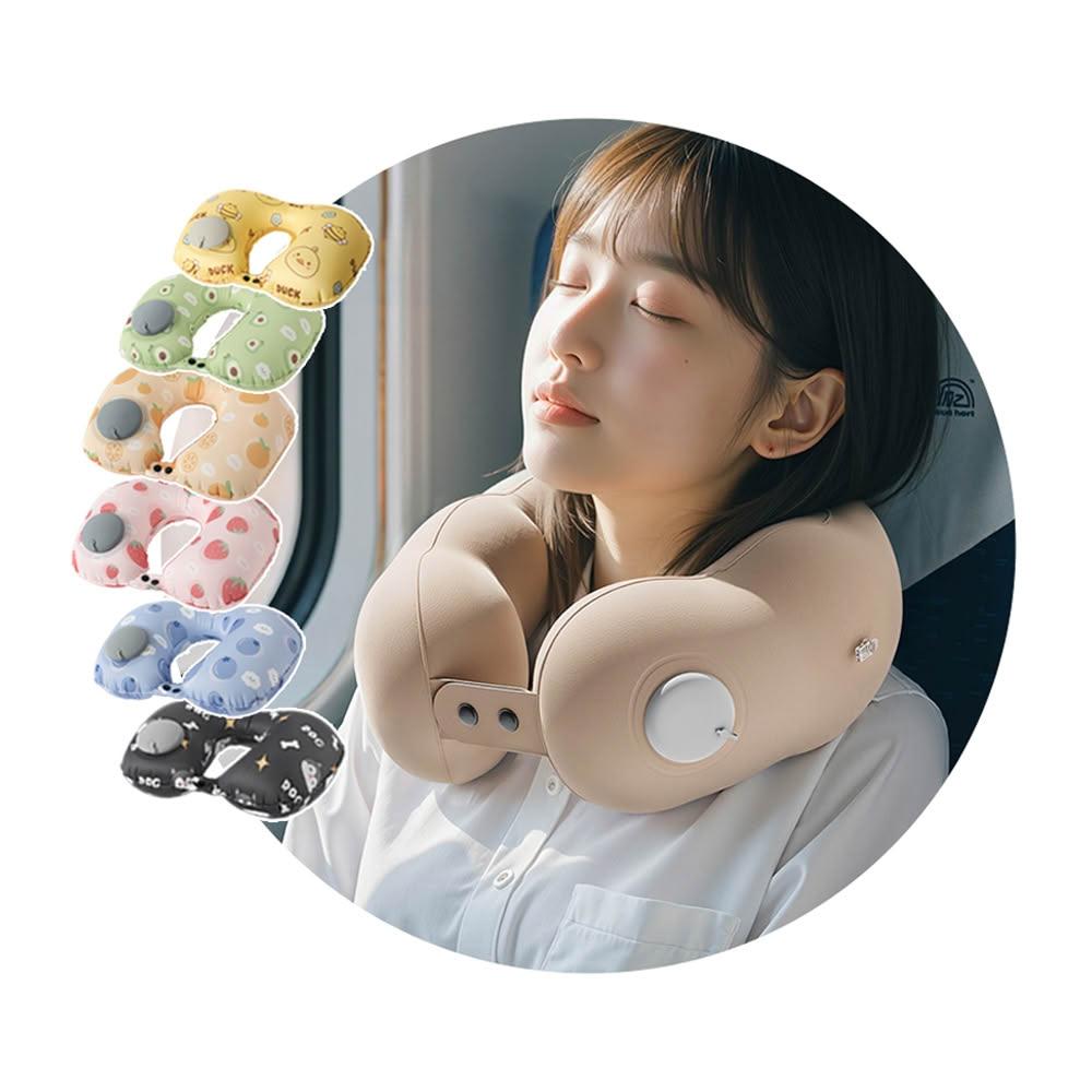 新款 按壓充氣U型枕 牛奶絲 冰絲 |《 u型枕 護頸枕 飛機枕 頭頸枕 充氣頸枕 午睡枕 旅行枕 出國 旅遊 》