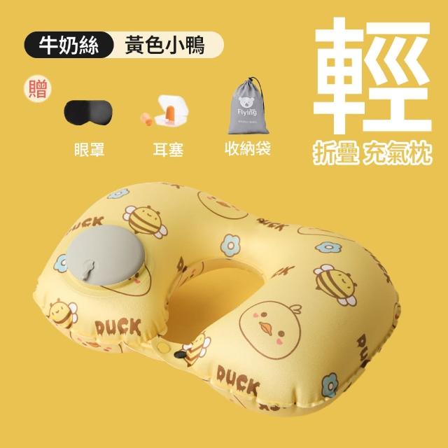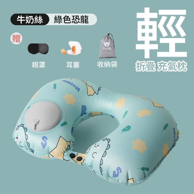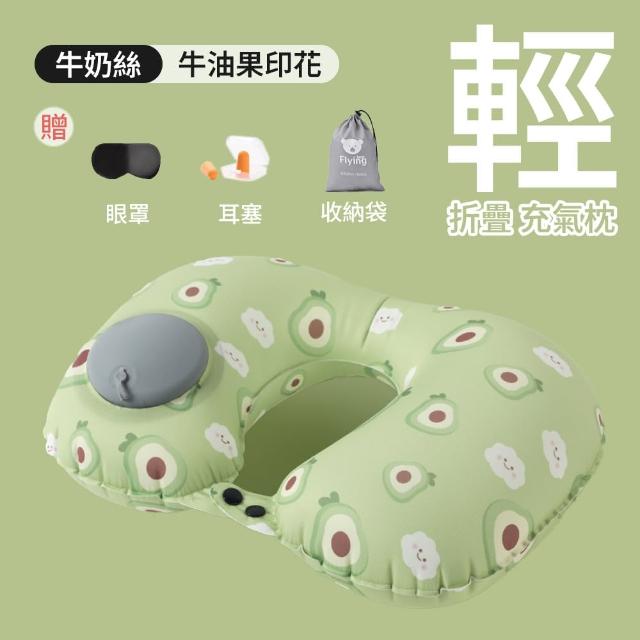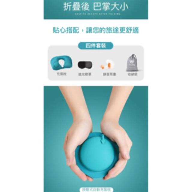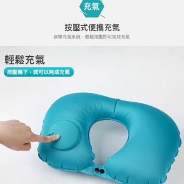 旅遊按壓自動充氣U型枕 牛奶絲 冰絲面料 |《 u型枕 護頸枕 飛機枕 頭頸枕 充氣頸枕 午睡枕 旅行枕 出國 旅遊 》