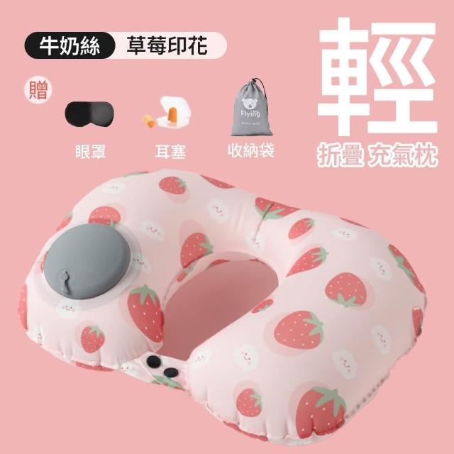新款 按壓充氣U型枕 牛奶絲 冰絲 |《 u型枕 護頸枕 飛機枕 頭頸枕 充氣頸枕 午睡枕 旅行枕 出國 旅遊 》