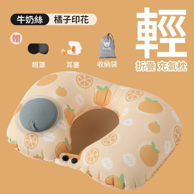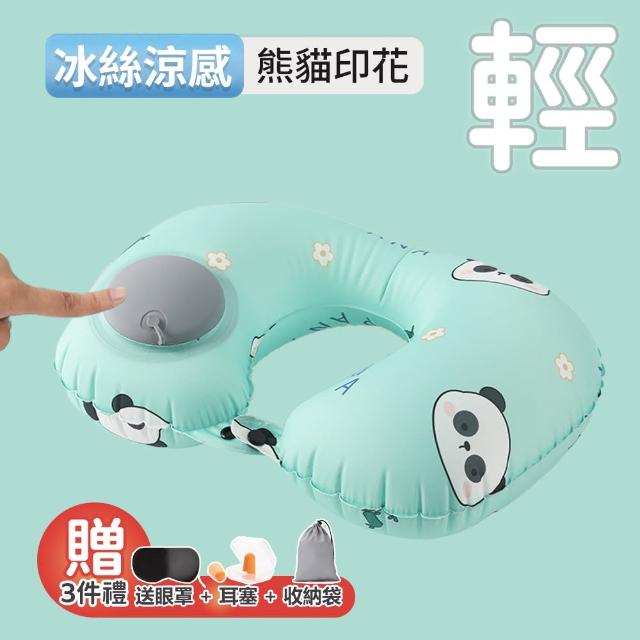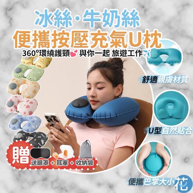 旅遊按壓自動充氣U型枕 牛奶絲 冰絲面料 |《 u型枕 護頸枕 飛機枕 頭頸枕 充氣頸枕 午睡枕 旅行枕 出國 旅遊 》