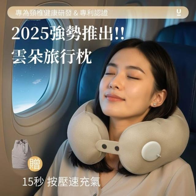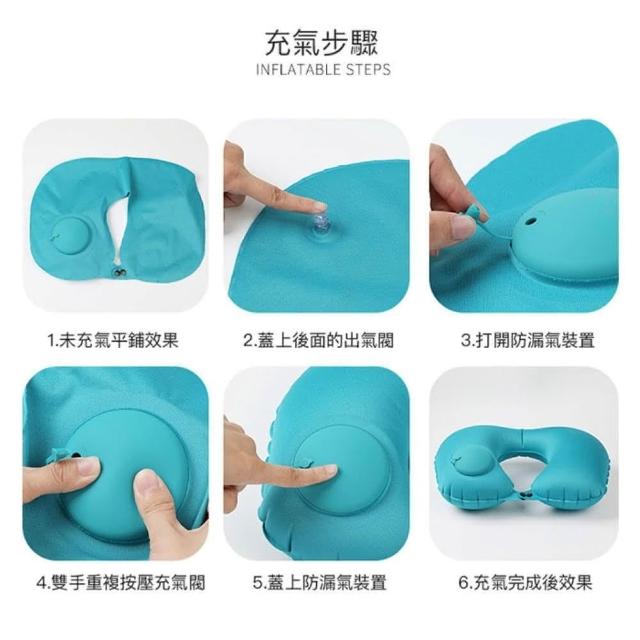 新款 按壓充氣U型枕 牛奶絲 冰絲 |《 u型枕 護頸枕 飛機枕 頭頸枕 充氣頸枕 午睡枕 旅行枕 出國 旅遊 》