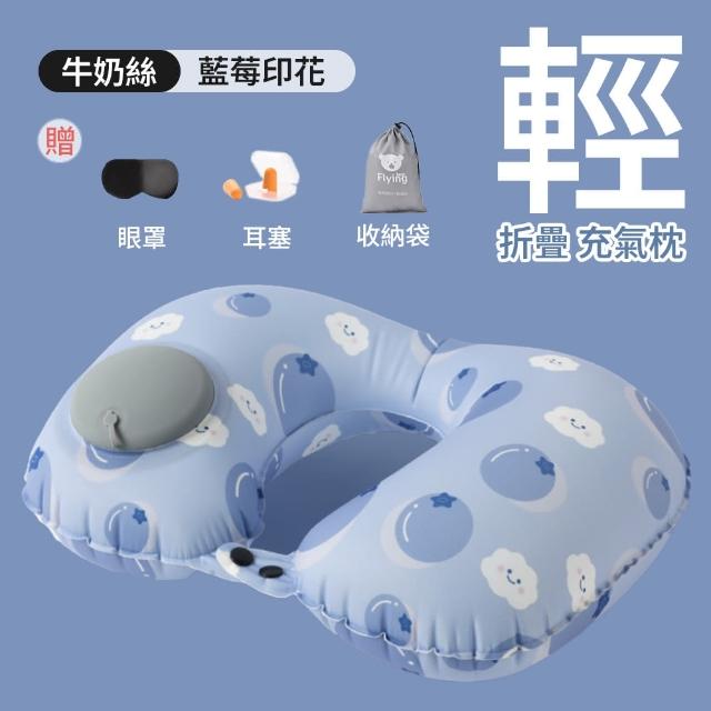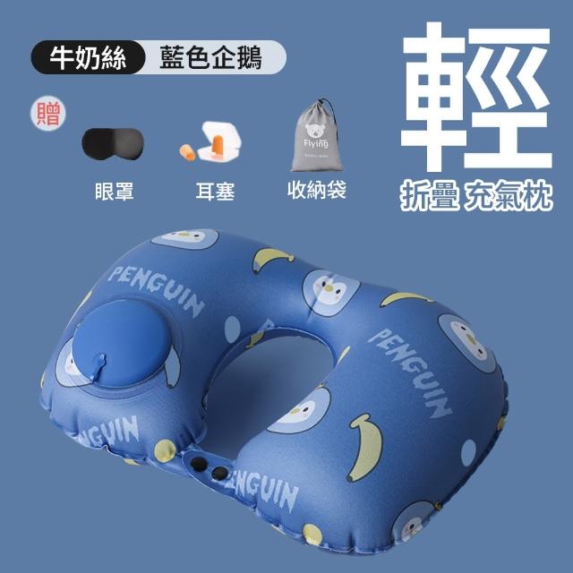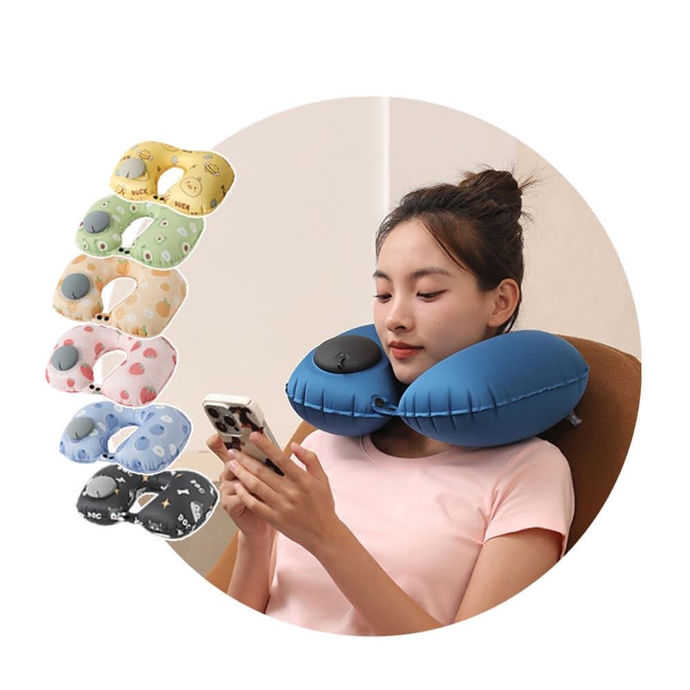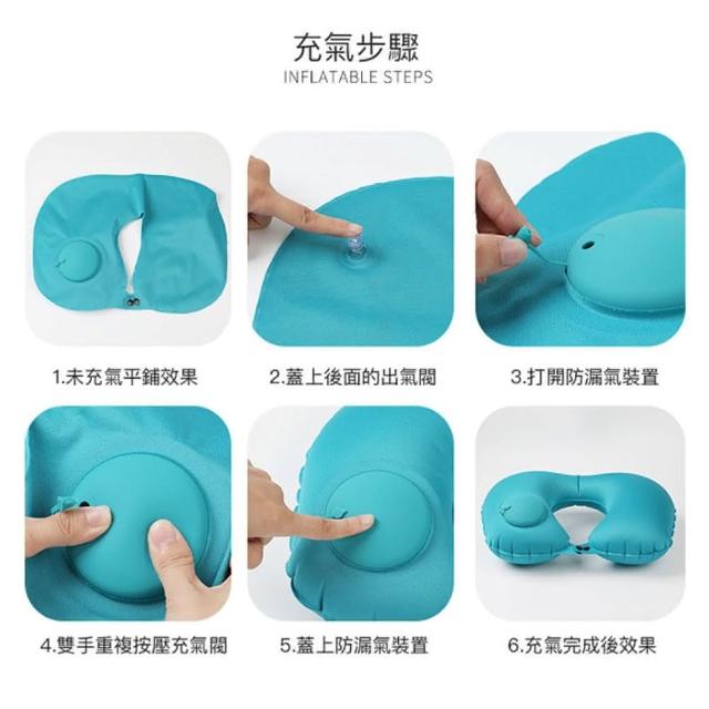 旅遊按壓自動充氣U型枕 牛奶絲 冰絲面料 |《 u型枕 護頸枕 飛機枕 頭頸枕 充氣頸枕 午睡枕 旅行枕 出國 旅遊 》