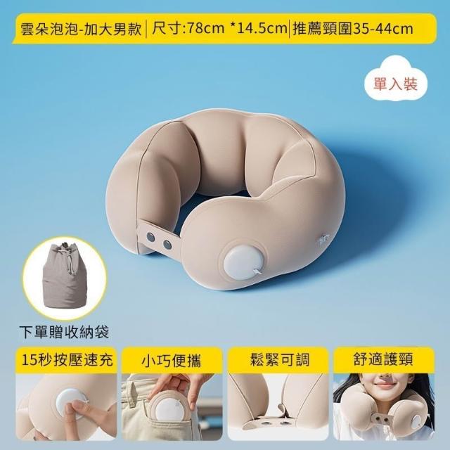 新款 按壓充氣U型枕 牛奶絲 冰絲 |《 u型枕 護頸枕 飛機枕 頭頸枕 充氣頸枕 午睡枕 旅行枕 出國 旅遊 》