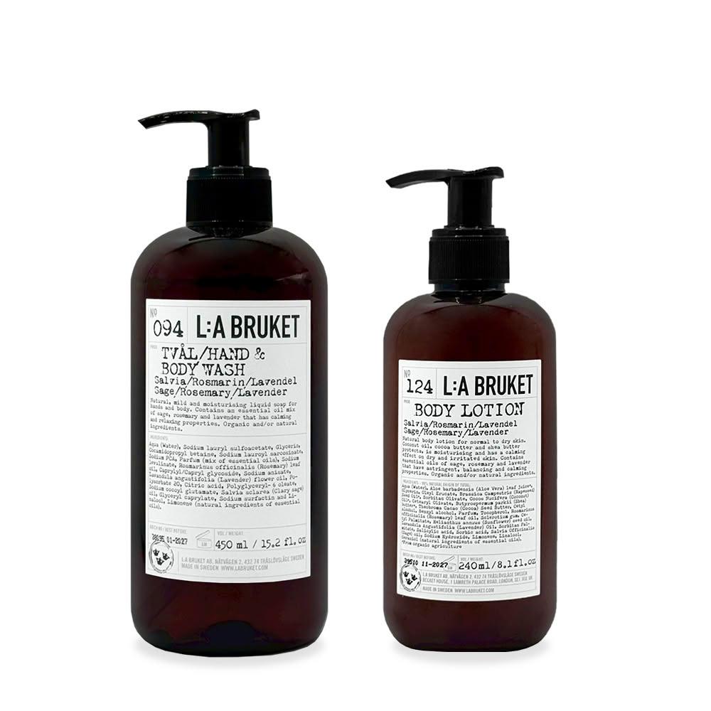 L:A BRUKET鼠尾草/迷迭香/薰衣草沐浴組 (094潔膚露450ml+124身體乳240ml) 國際航空版