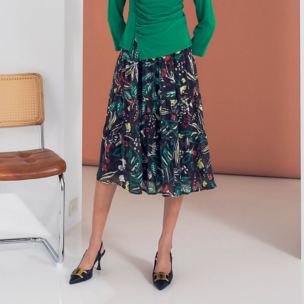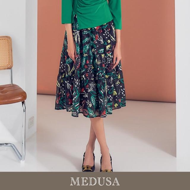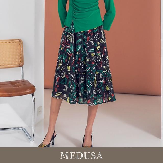 MEDUSA 曼度莎現貨-綠葉雪紡印花裙(M-XL)|裙子 中長裙 雪紡裙201-5240C