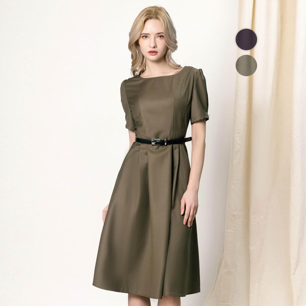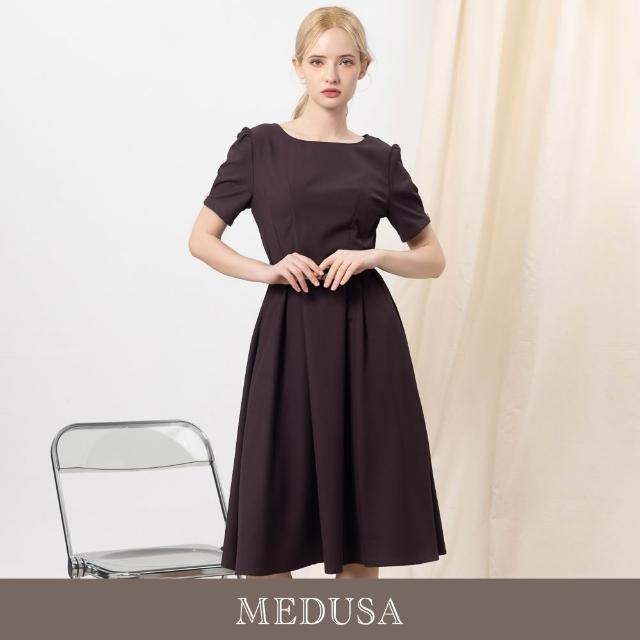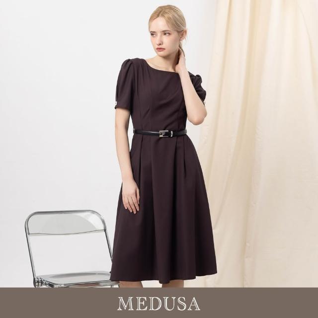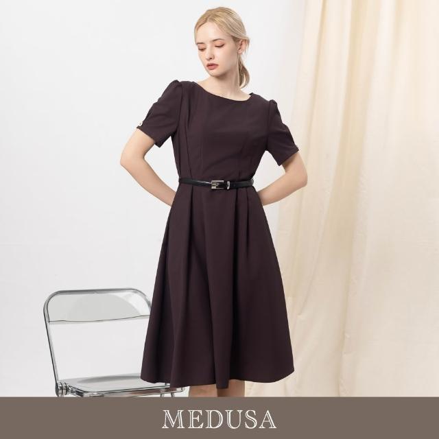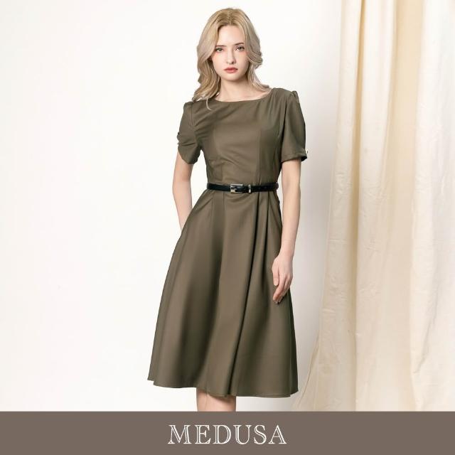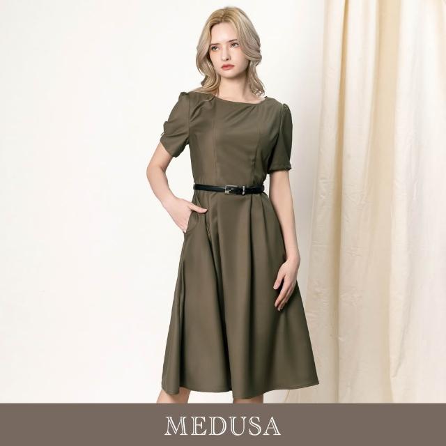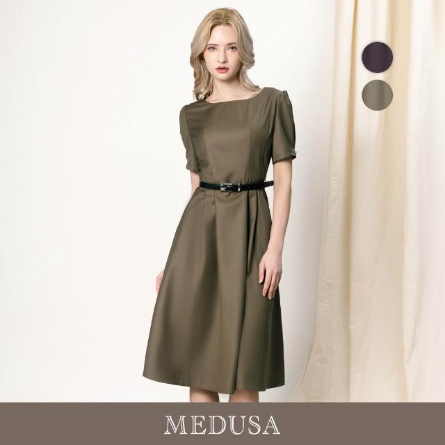 MEDUSA 曼度莎現貨-典雅素色壓褶圓裙洋裝(附腰帶) - 2色(M-XL)|小禮服 優雅洋裝 約會穿搭