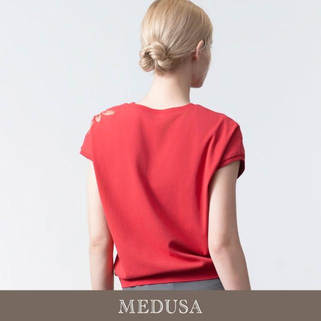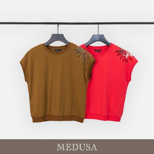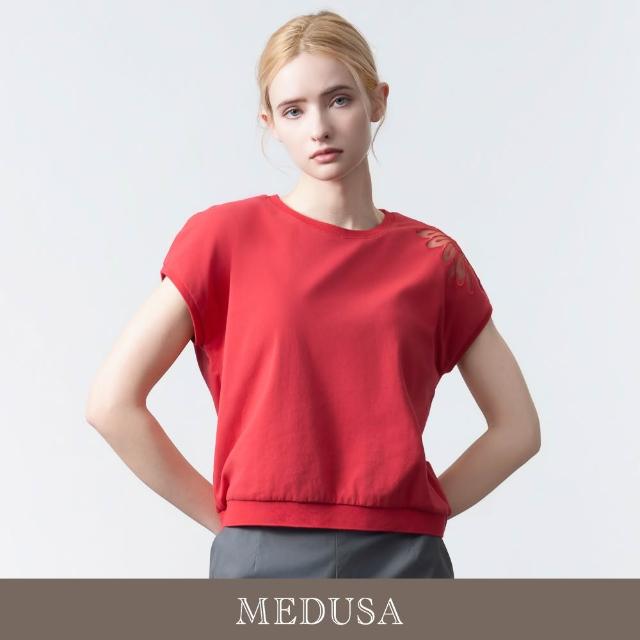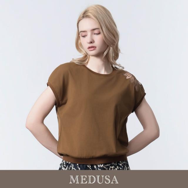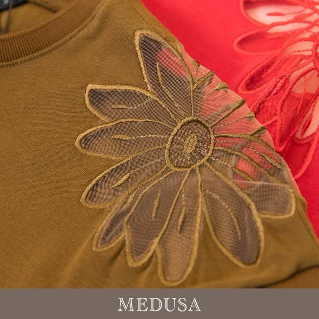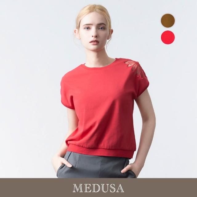 MEDUSA 曼度莎現貨-透膚肩花設計刺繡上衣 - 2色(M-XL)|女休閒上衣 女短袖上衣 造型刺繡
