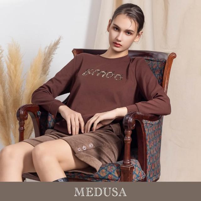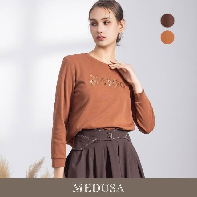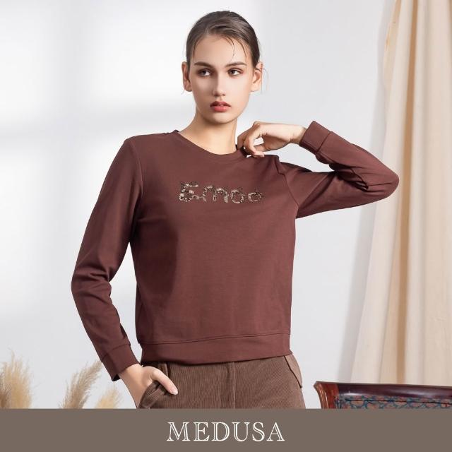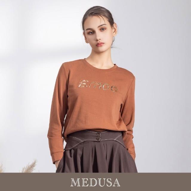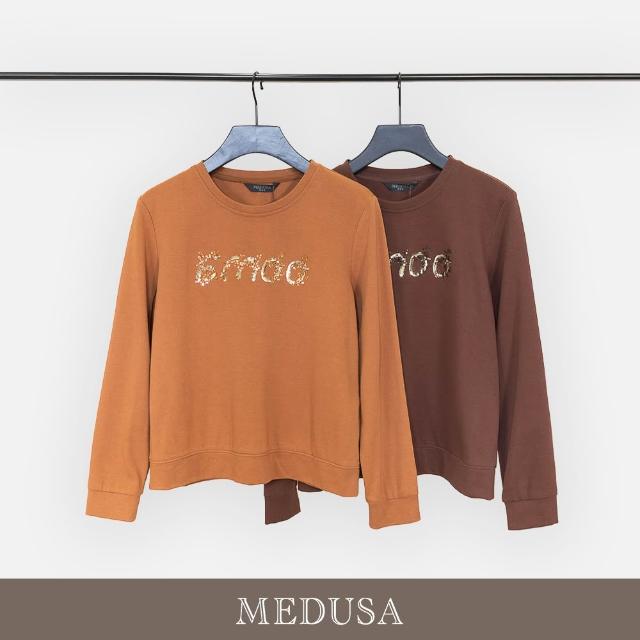 MEDUSA 曼度莎現貨-亮片刺繡字母圓領大學T - 2色(M-XL)|大學T 女休閒上衣 女長袖上衣