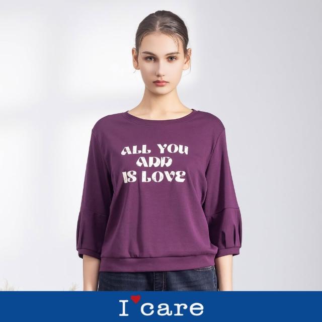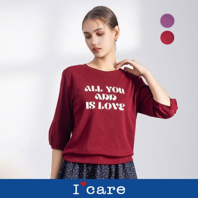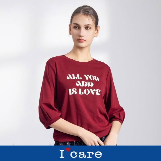 I’Care 依卡現貨-字母印花泡泡袖七分袖T恤 - 2色(F)|女T恤 女休閒上衣 女長袖T恤