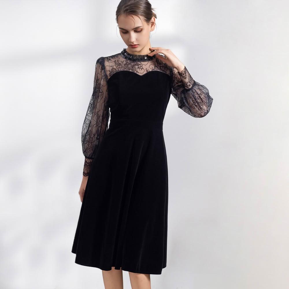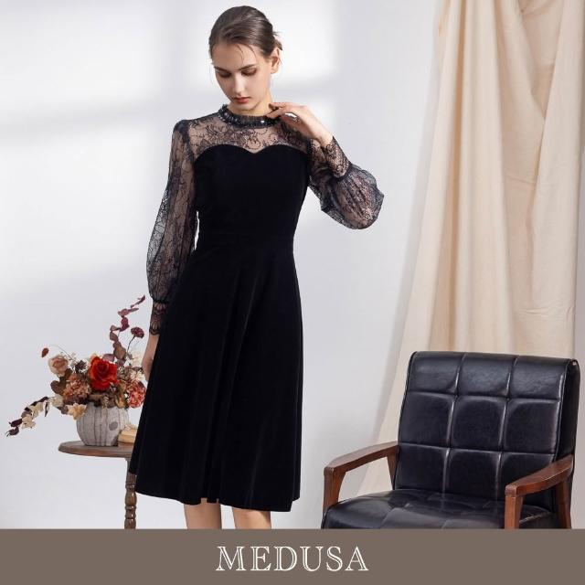 MEDUSA 曼度莎現貨-氣質黑色絲絨禮服洋裝(M-XL)|小禮服 晚宴服 聚會穿搭 高雅絲絨