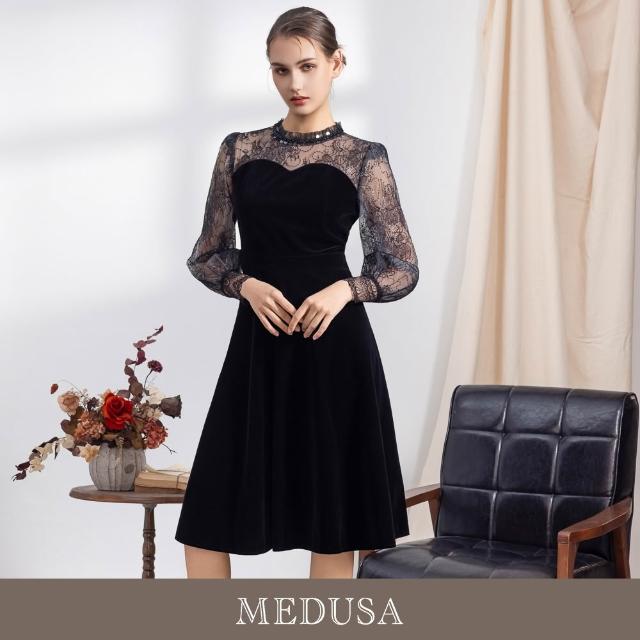 MEDUSA 曼度莎現貨-氣質黑色絲絨禮服洋裝(M-XL)|小禮服 晚宴服 聚會穿搭 高雅絲絨