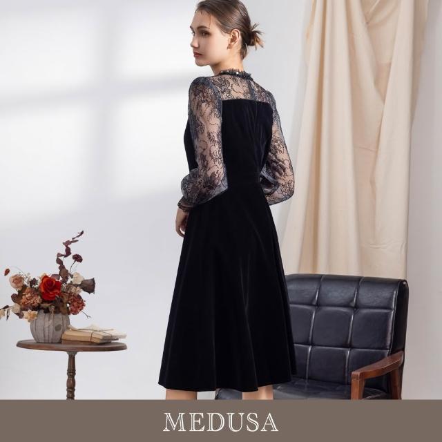 MEDUSA 曼度莎現貨-氣質黑色絲絨禮服洋裝(M-XL)|小禮服 晚宴服 聚會穿搭 高雅絲絨