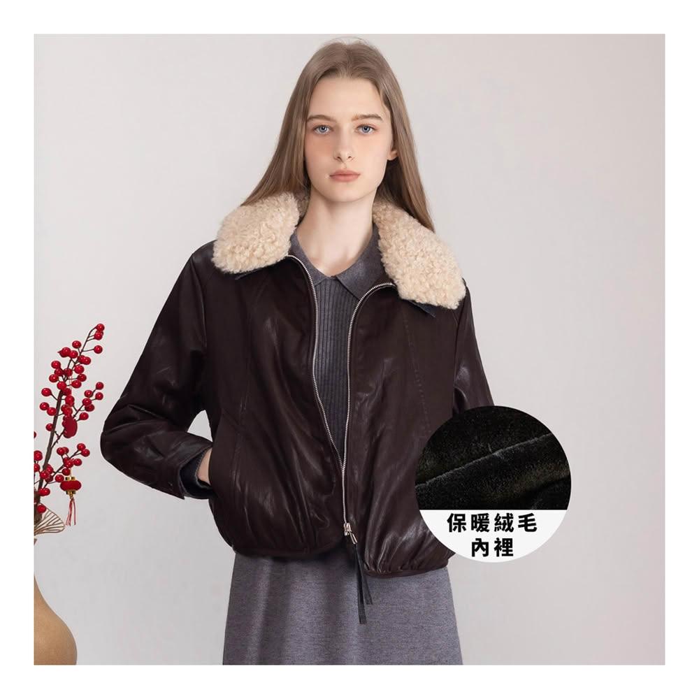I’Care 依卡現貨-輕奢質感羊羔毛領皮革外套(加厚絨毛內裡)(F)|女外套 保暖外套(707-25607)