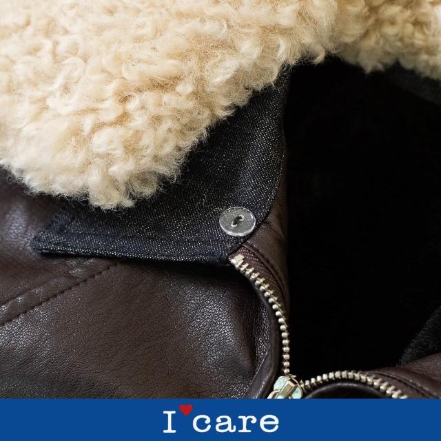 I’Care 依卡現貨-輕奢質感羊羔毛領皮革外套(加厚絨毛內裡)(F)|女外套 保暖外套(707-25607)