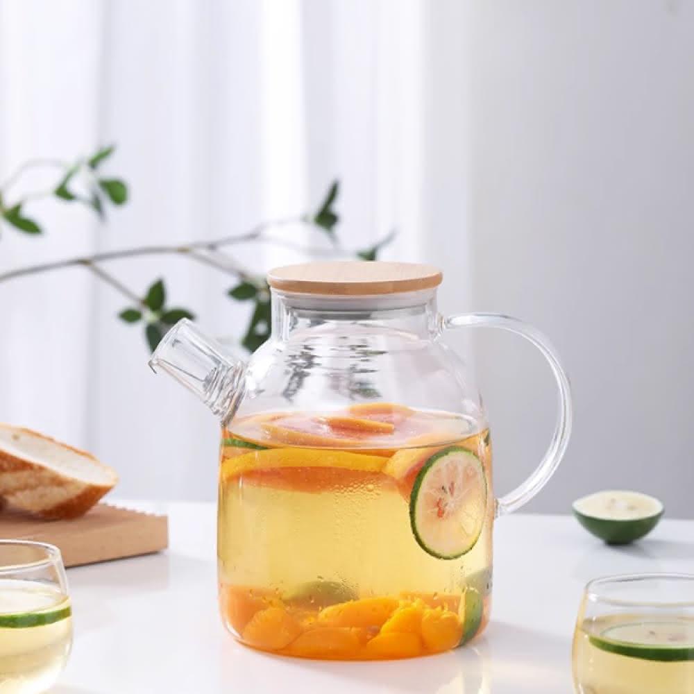 渥思日式竹蓋果茶玻璃壺-1L(大容量耐熱茶壺 冷水壺 水果茶壺 下午茶壺)