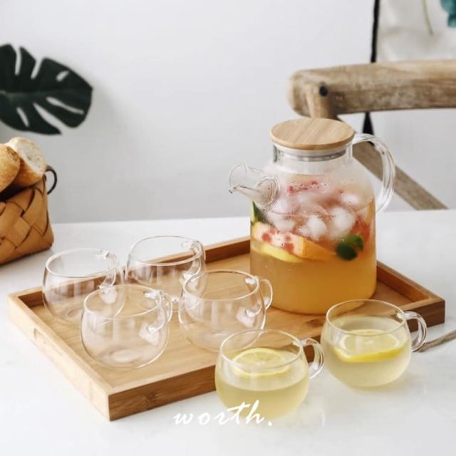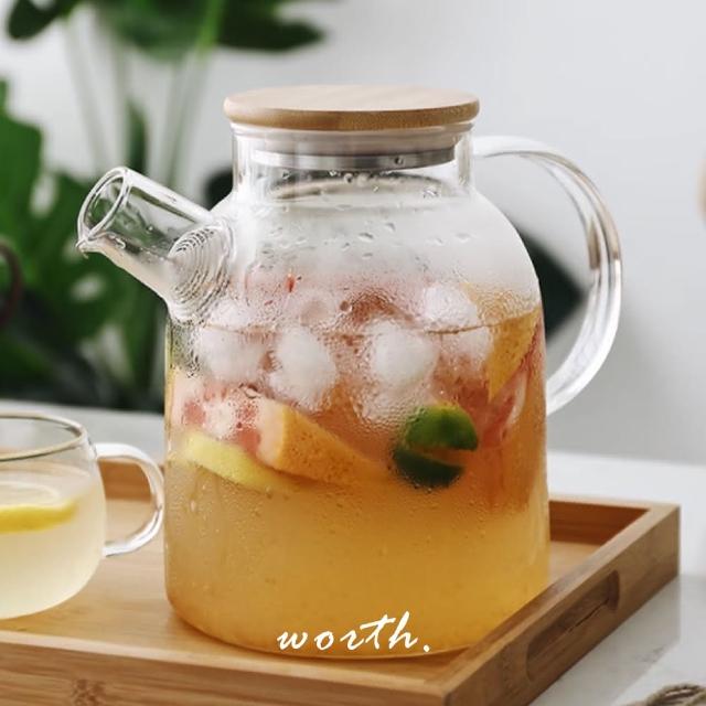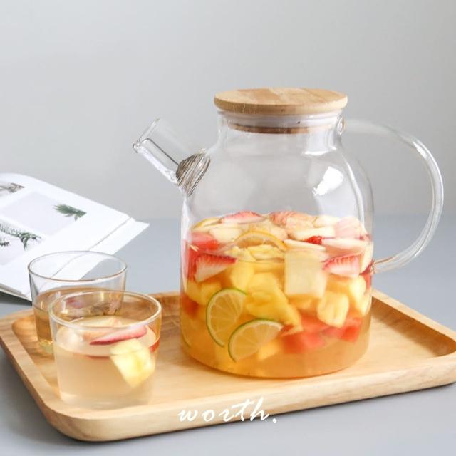渥思日式竹蓋果茶玻璃壺-1L(大容量耐熱茶壺 冷水壺 水果茶壺 下午茶壺)