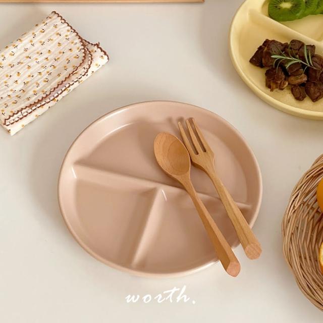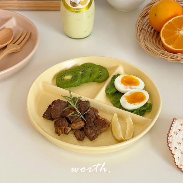 渥思韓系圓形三格餐盤(陶瓷盤 分餐盤 減肥盤 211餐盤)