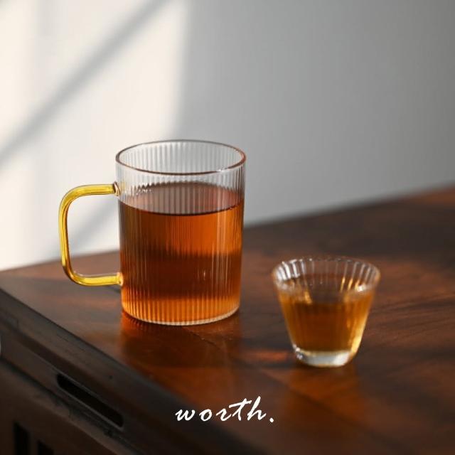 渥思日式簡約把手豎紋玻璃杯(耐熱玻璃 茶杯 咖啡杯 啤酒杯 馬克杯)