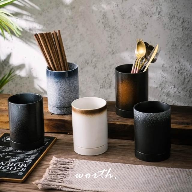 渥思日式復古餐具瀝水桶(陶瓷筷子桶 簡約瀝水架 餐具桶 筷子桶)