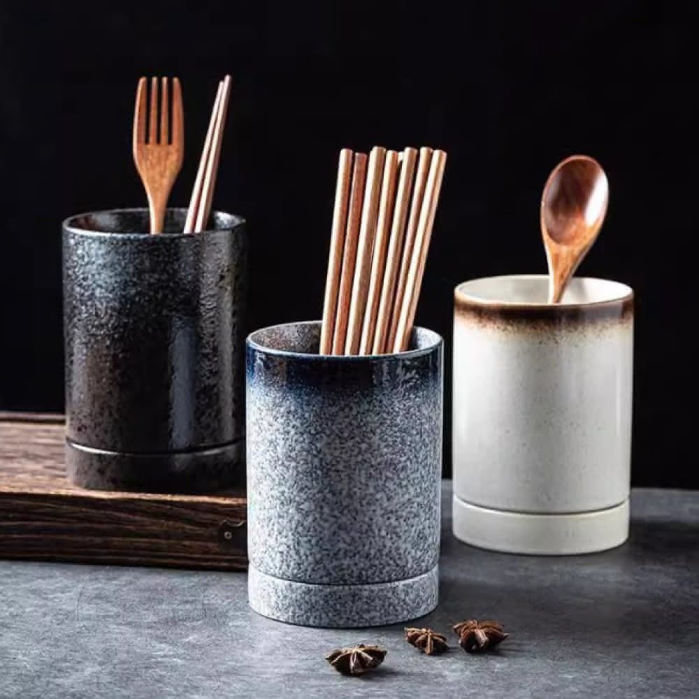 渥思日式復古餐具瀝水桶(陶瓷筷子桶 簡約瀝水架 餐具桶 筷子桶)