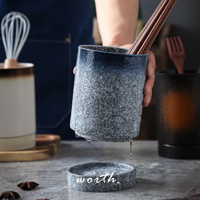 渥思日式復古餐具瀝水桶(陶瓷筷子桶 簡約瀝水架 餐具桶 筷子桶)