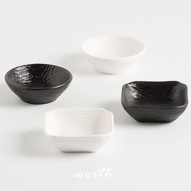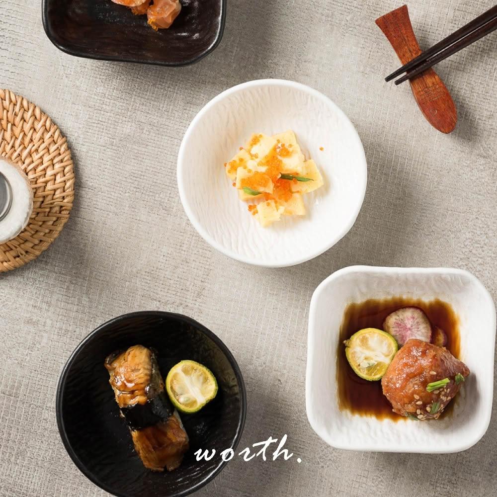 浮雕石紋醬料碟 (小菜碟.小碟子.味碟.沾醬碟.圓形調味碟.方形醬料碟.陶瓷餐具)