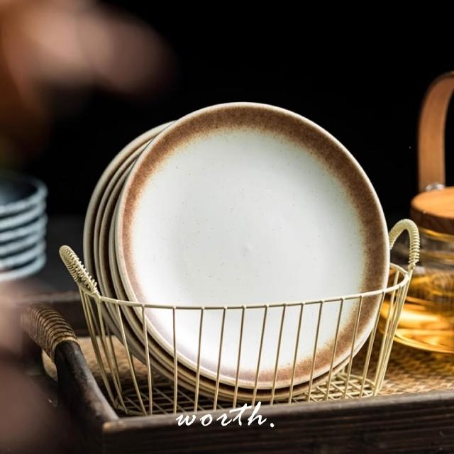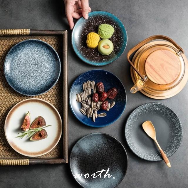 日式復古陶瓷甜點盤 (點心盤.蛋糕盤.水果盤.圓盤.平盤.6吋盤.小碟子.家用餐盤.陶瓷餐具)