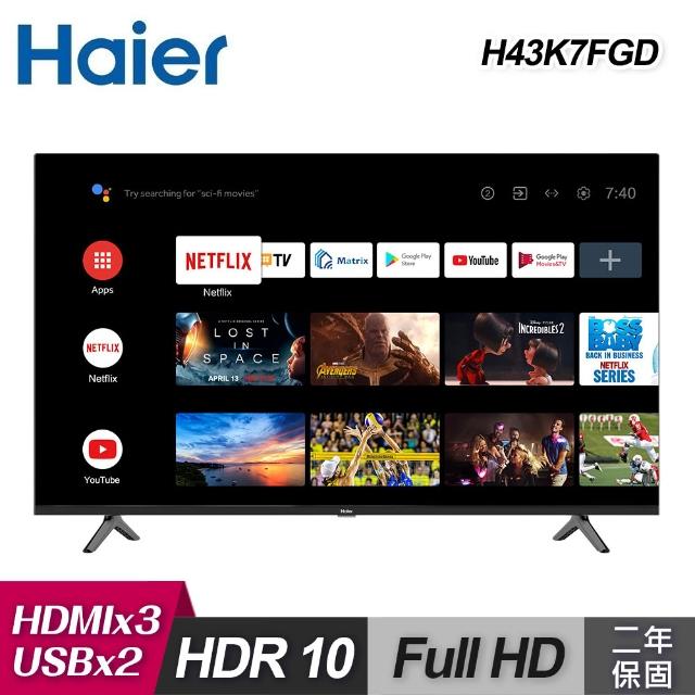 Haier 海爾H43K7FGD 43型|FHD Android 11.0 聲控液晶顯示器|含運無安裝