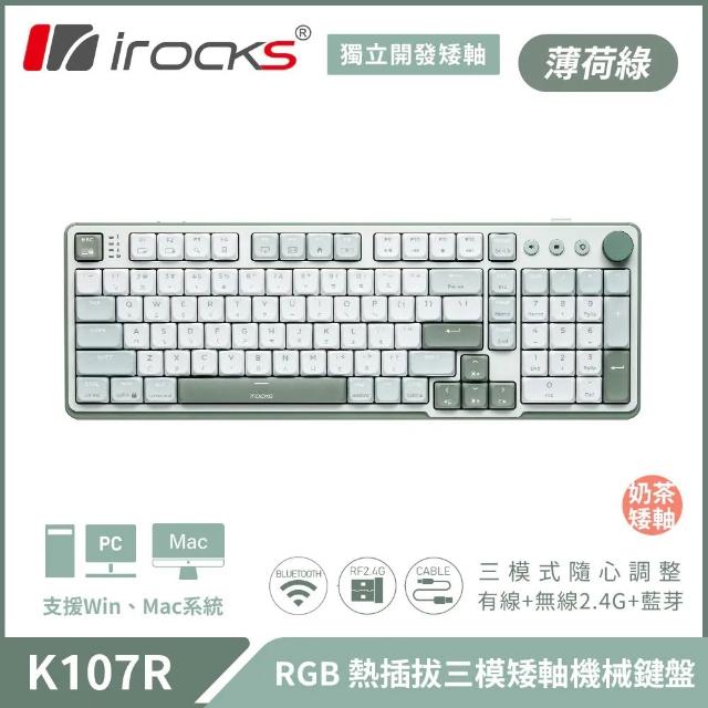 i-RocksK107R 無線三模機械鍵盤|奶茶矮軸/薄荷綠