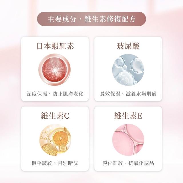 - 蝦紅素+玻尿酸,保濕鎖水吸收快