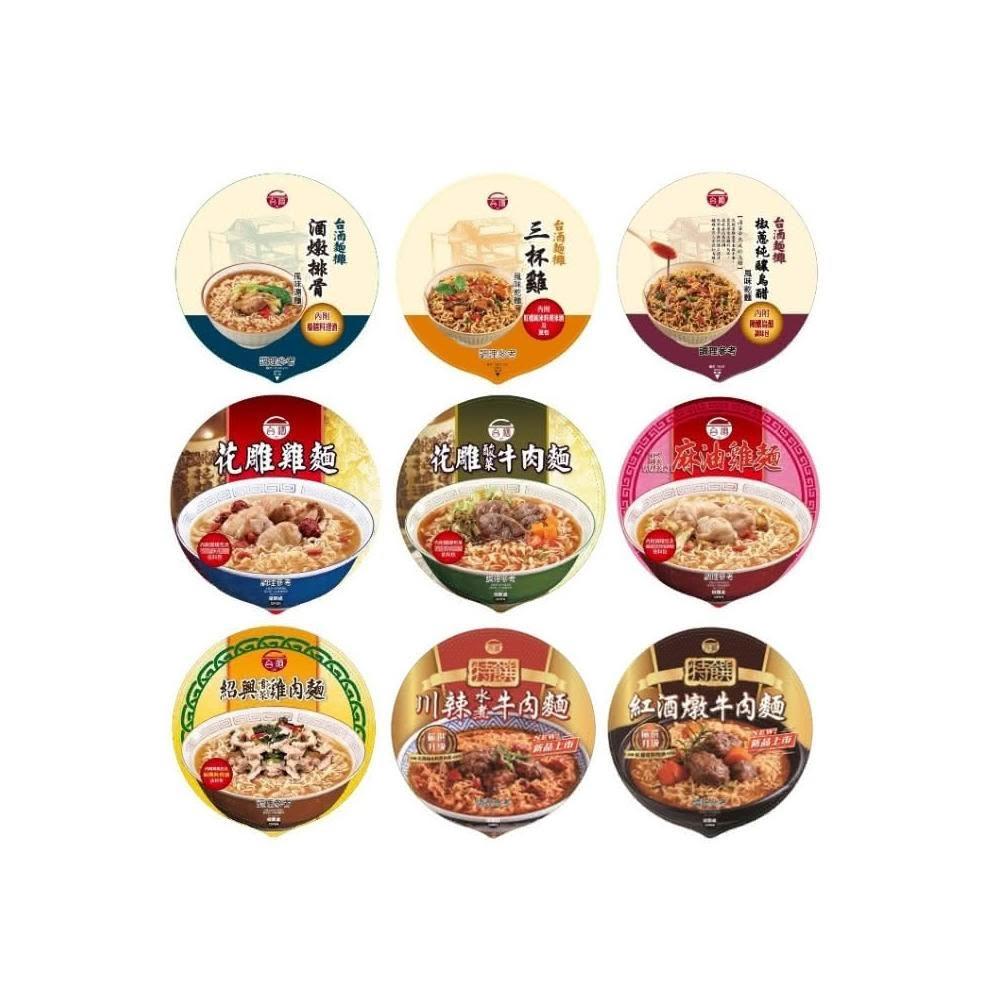 台酒台酒碗麵全系列 (酸菜牛肉、麻油雞、花雕雞、雪菜雞、三杯雞、酒燉排骨、烏醋乾麵)任選