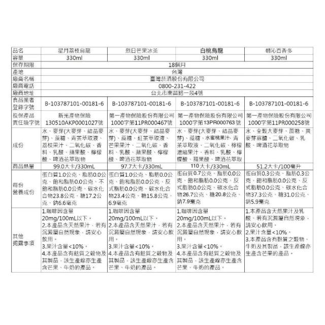 台酒生技金牌FREE啤酒風味飲料-白桃烏龍 (無酒精飲品 白桃烏龍 台啤 台灣製造 飲料 飲品)