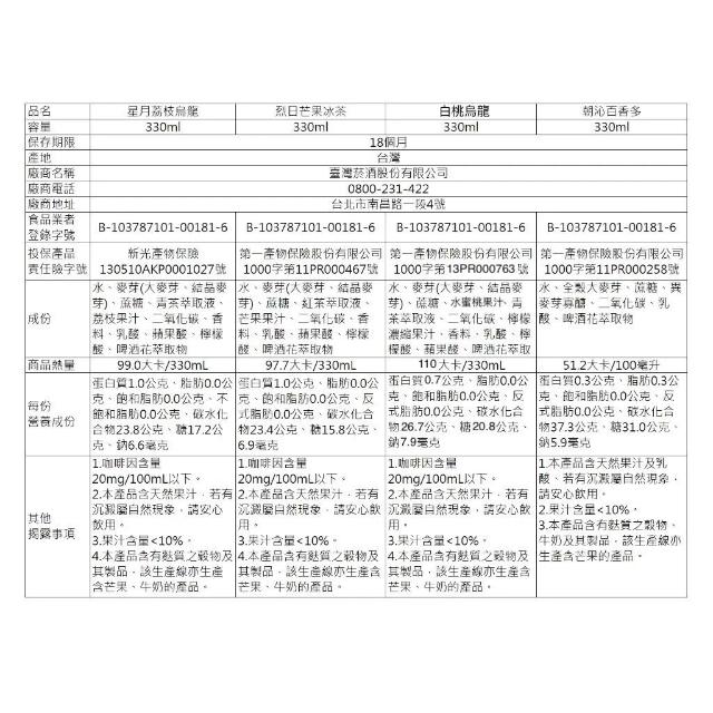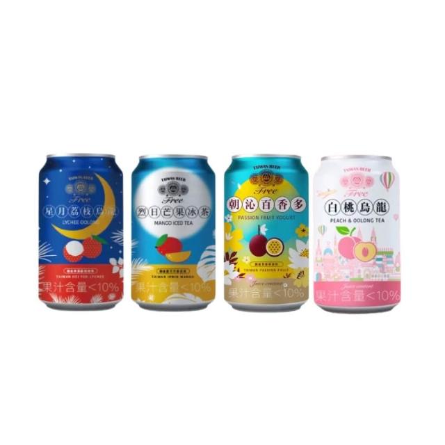 台酒金牌FREE啤酒風味飲料-星月荔枝烏龍/烈日芒果冰茶/朝沁百香多/白桃烏龍-6入組(無酒精啤酒)