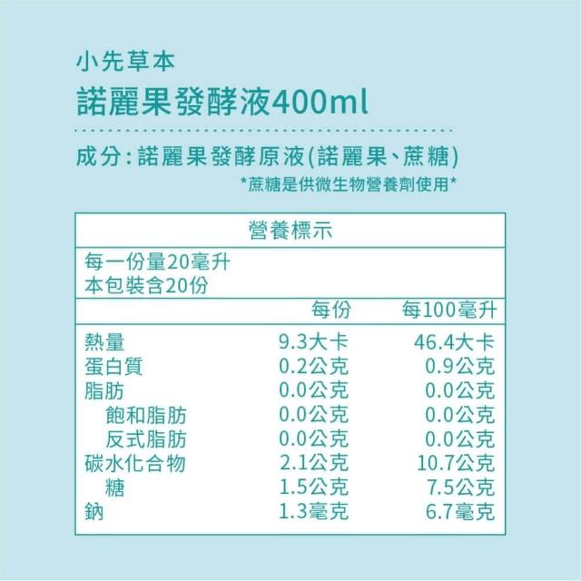 HERBAL 小先草本屏東諾麗果發酵液 - 玻璃瓶裝 400mL(不加水/無添加/單純/安全/衛生)